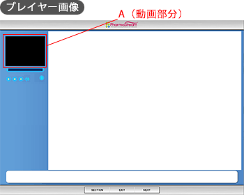 講義プレイヤーの動画部分(下記、プレイヤー画像のAの部分)が画像と同様に黒い場合は、その原因としてはいくつかの要因が考えられます。それぞれの設定をご確認ください。